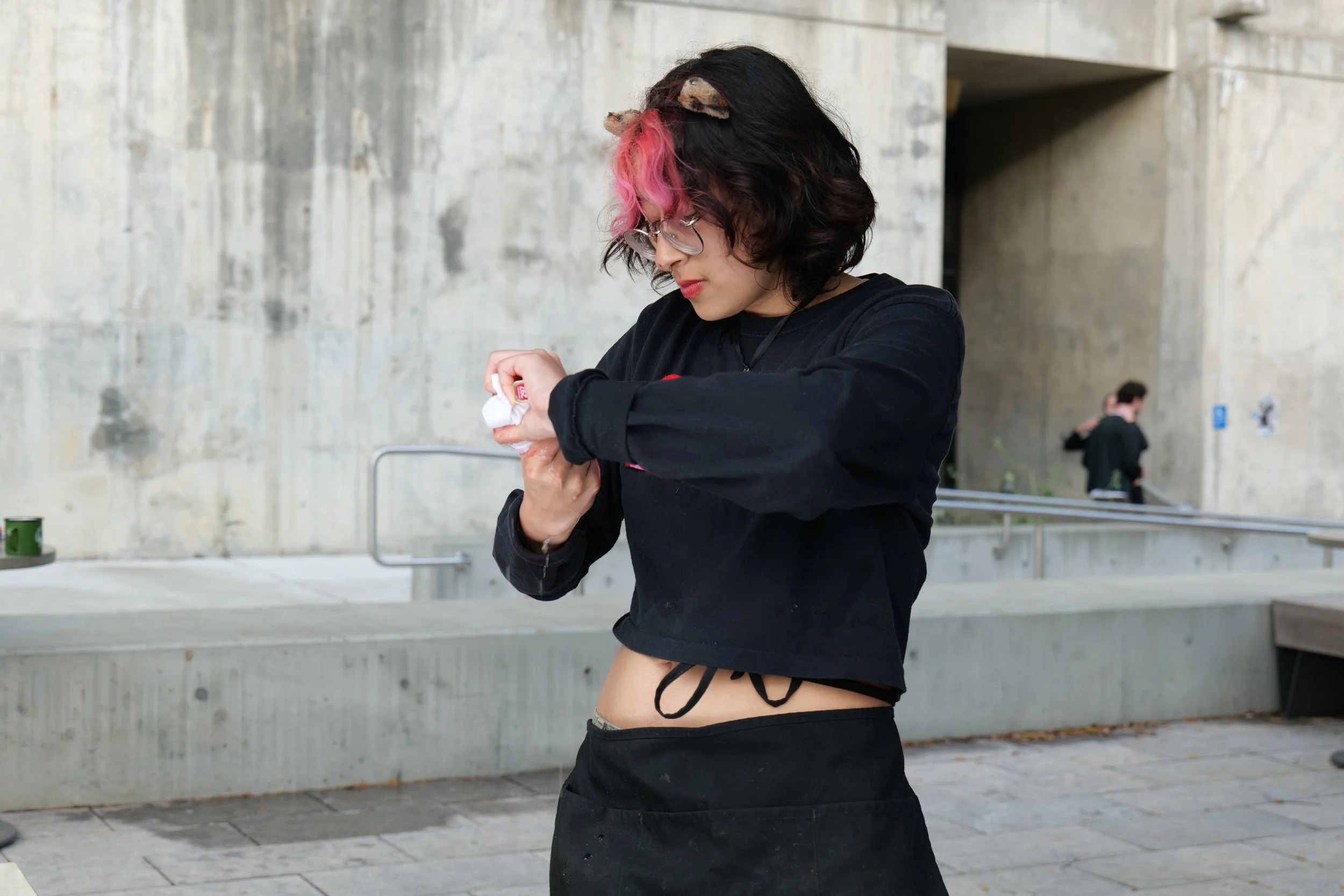 Spit Piece was a live fifteen minute performance at at the University of California, Berkeley. Arreaga’s performance was crafted from their lived experiences with girlhood and working in the food industry. Spit Piece explores the tacitly mutual objectification that occurs between those working and those at leisure.